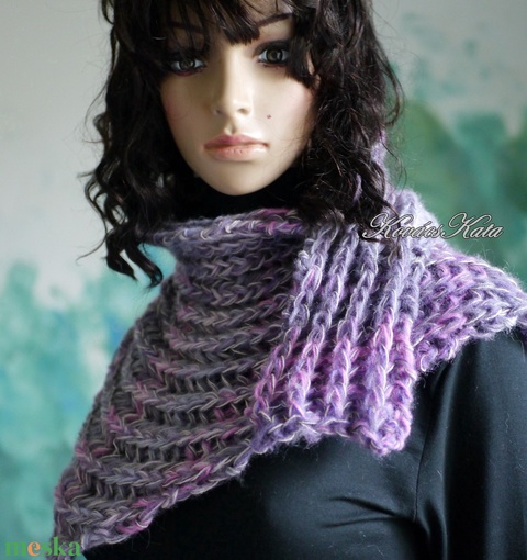 TÜNDE KENDŐ - extravagáns kézzel kötött puha, vastag vállkendő / levendula