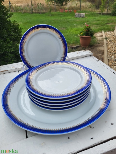 Alföldi porcelán_kék-arany süteményes tányérkészlet