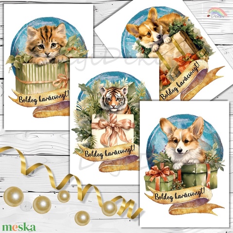 Kutyák és cicák karácsonya. Képeslap-csomag.