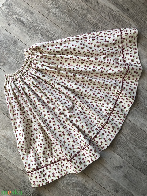 - Anyaga: kékfestővászon, szaténszalag, csipke