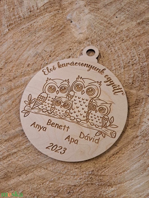 4 tagú családi baglyos karácsonyfadísz