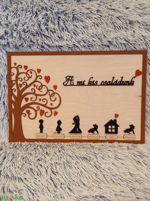 A család fontosabb mérföldköveit időrendi sorrendben ábrázoló kép. A legjobb ajándék házassági évfordulóra vagy akár szülőknek, amivel ki lehet fejezni a család egységét.