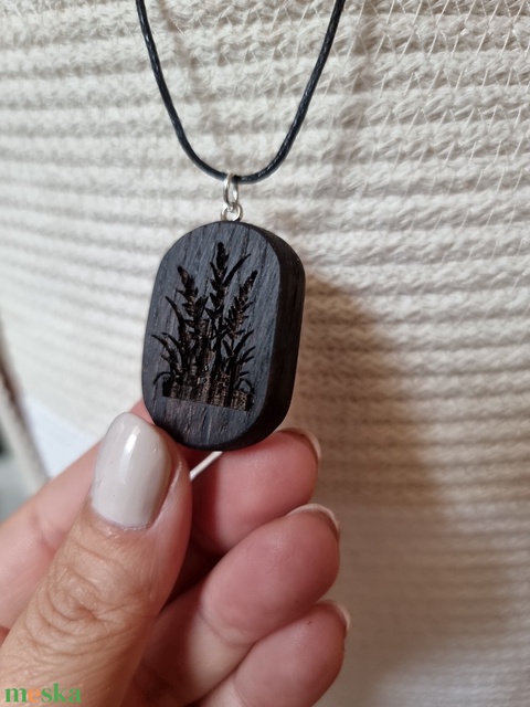 - Anyaga: fa, viaszolt bőr lánc, orvosi fém kapocs