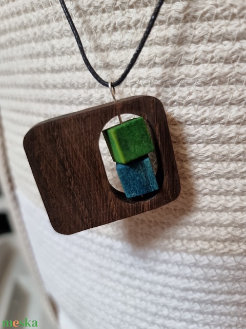 - Anyaga: fa, viaszolt bőr lánc, orvosi fém kapocs