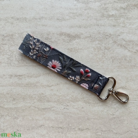 Csuklóra Helyezhető Kulcstartó Hímzett Virágok Szürke