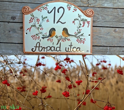 Vörösbegy pár kerámia ház és utca név tábla