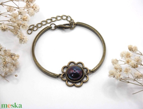 Virág formájú, lila kabosonos, bronz színű karkötő – Dome