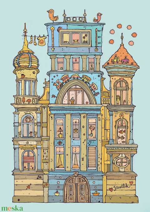 Halak háza - szignózott művészi nyomat, A4