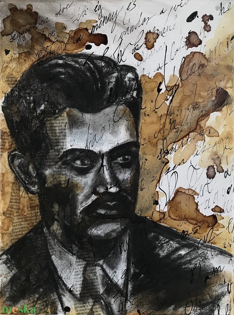 - Anyaga: vászon, akrilfesték, tustinta, kávé