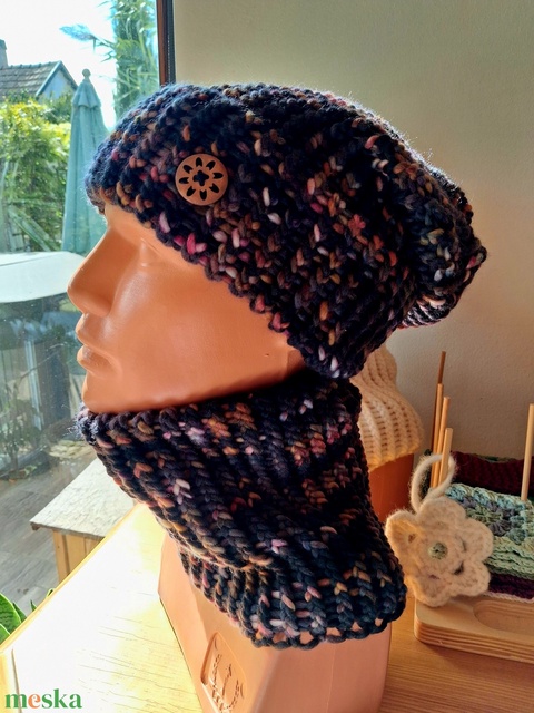 DHG Piuma Print 100% extra finom merino gyapjú fonalból kézzel készült sapka-körsál szett