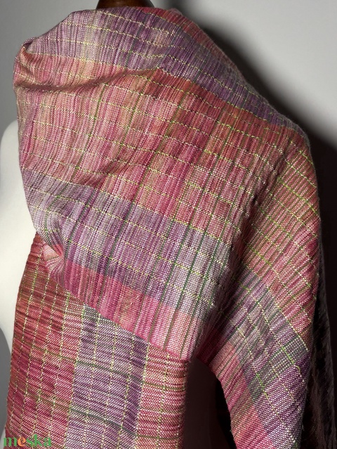 Ha egy olyan ragyogó sálat keresel, amely tökéletes eleganciát és meleget biztosít, ez a kézzel szőtt barack átmenetes Selyem - Merino kendő tökéletes választás. Gyönyörű fénye van, és kellemes a tapintása. A kendő szövésének bonyolult technikája egyedi, textúrált mintát hoz létre, így ez a kiegészítő valóban egyedülálló bármely ruhatárban.