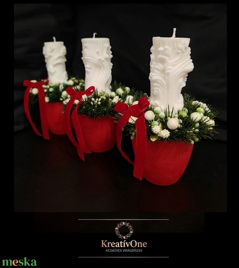 Gyertyák piros bársony kaspóban