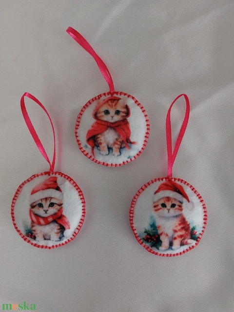 Piros cicás függődísz