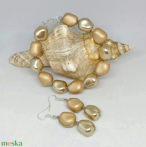 Tekla matt és fényes arany pebble gyöngy karkötő és fülbevaló szett