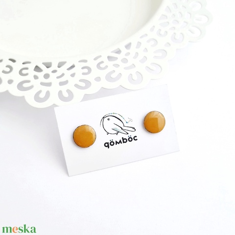 Tűzzománc bedugós kerek sárga fülbevaló