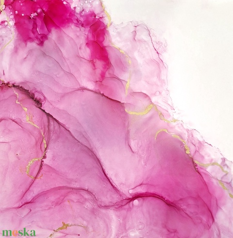Alcohol ink technikával készült, egyedi, kézzel festett pink-arany dohányzóasztal .