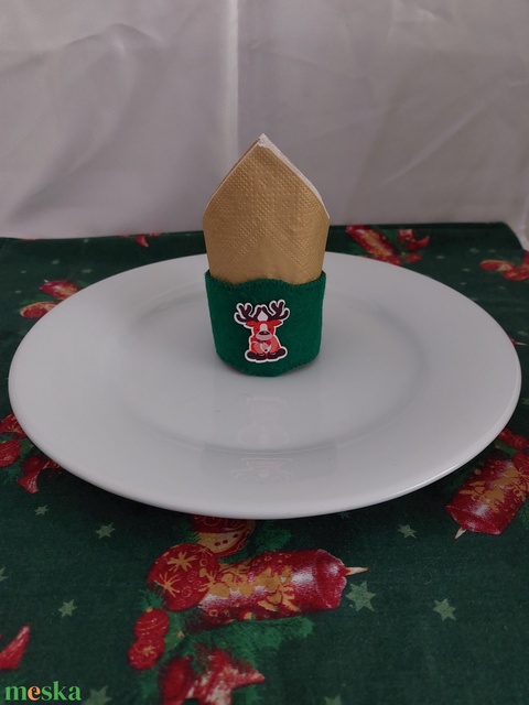 Karácsonyi mintás zöld színű szalvétagyűrű