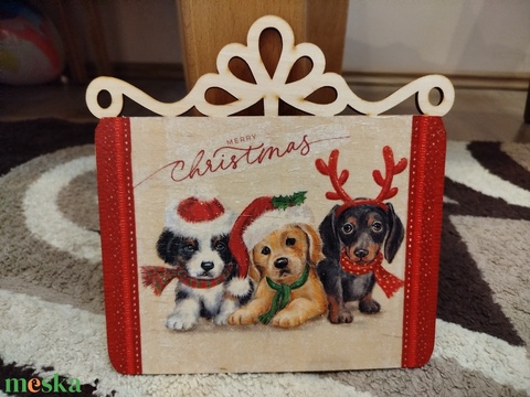 Karácsonyi feliratos cuki tacskós kutyusos táblácska ajtódísz