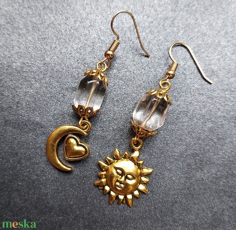 - Anyaga: ásványgyöngyök, fülbevaló akasztó, aranyszínű medál