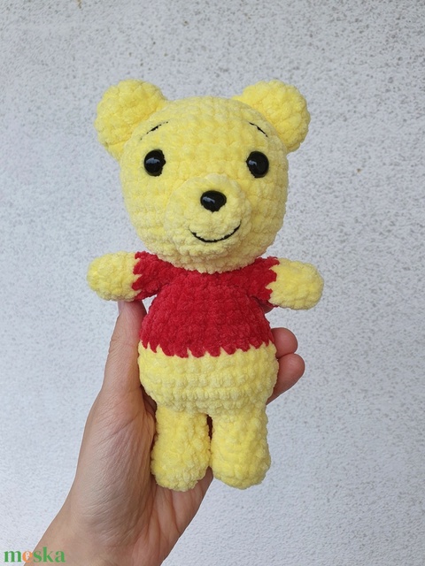 - Anyaga: zsenília fonal, szilikonizált poliészter golyó, biztonsági szem, pamut fonal