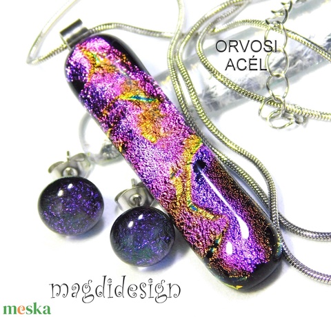 Bíbor-lila színjáték dichroic üvegékszer szett nyaklánc stiftes fülbevaló 1