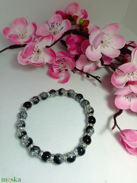 - Anyaga: rugalmas damil, üveggyöngy, ezüstös köztes