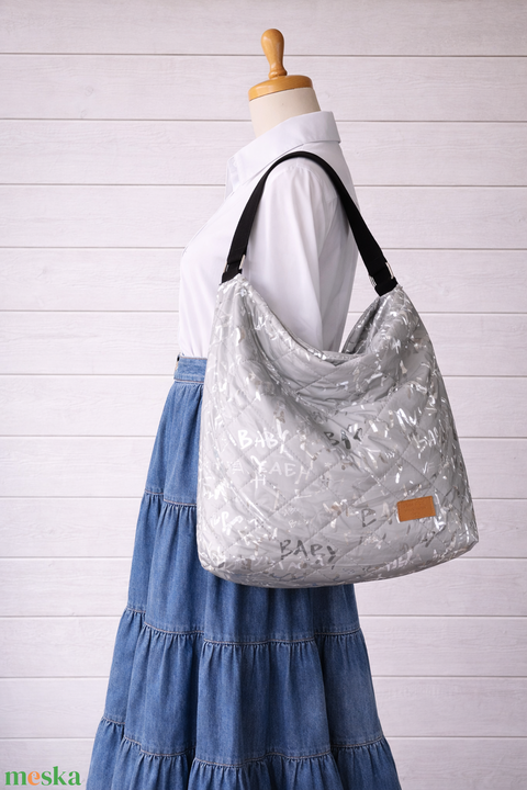 2 in 1 ezüszszürke táska - feliratos
