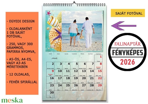 2026-os egyedi fényképes falinaptár nagyiknak, nagyszülőknek. Különleges tervezésű falinaptárammal szeretnék hozzájárulni az ajándékozás öröméhez. Vásárlásod után e-mailben megküldött visszaigazolásban fogom megírni neked, a naptár elkészítésének teljes menetét. Abban találod majd az elszámolást is, melyet előreutalással kell rendezned. A falinaptár 2 féle minőségben és 3 féle méretben (A5, A4, A3) készül. Mindkét minőség kiváló, 250 grammos, vagy 300 grammos papírra nyomódik, év végén sem fog a faltól felgöngyölődni. A falinaptár 12 oldalas, attól a hónaptól indul amelyikkel szeretnéd. Előlap külön ár ellenében kérhető! (450.-Ft/oldal) Szükséges fotók száma: 12 db