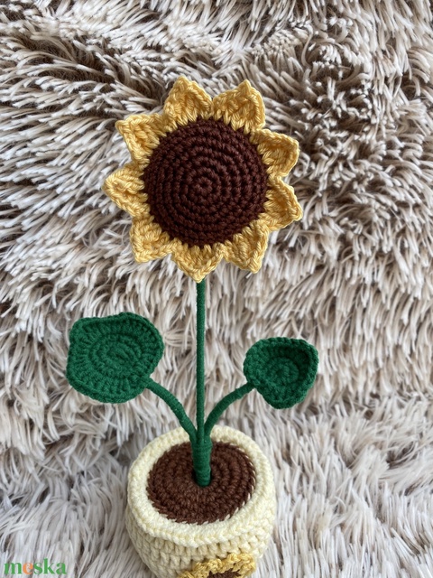 Horgolt napraforgó cserépben