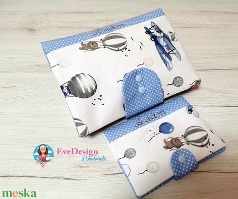 Dupla cipzáros Pelenkázó táska Anyukáknak és Babájuknak és hozzá illő Kiskönyv borító.