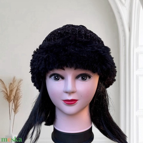 Téli kötött sapka szőrme hatású szegéllyel fekete tini, kisebb női 5637366