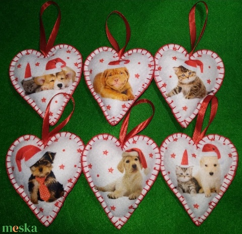 Cuki cicás, kutyás filc dekoráció, karácsonyfadísz