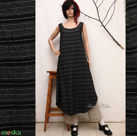 TRAPÉZRUHA - lenszövet design-ruha / fekete-szürke