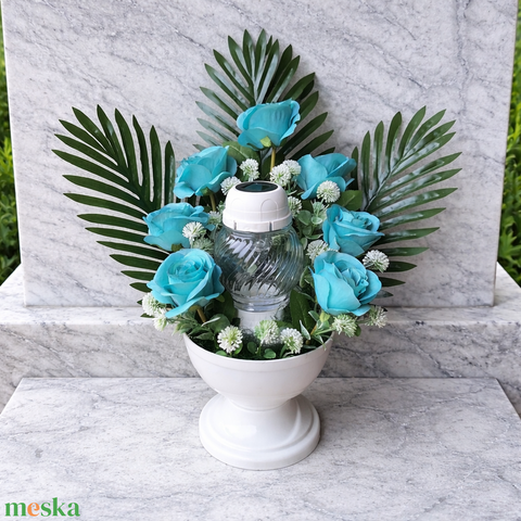Sírdísz napelemes mécsessel-rózsás