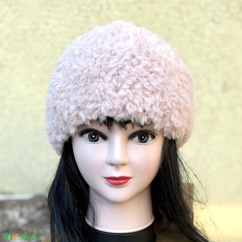 Szőrme hatású meleg kötött női sapka gyerek tini méret barackrózsaszín 5637548