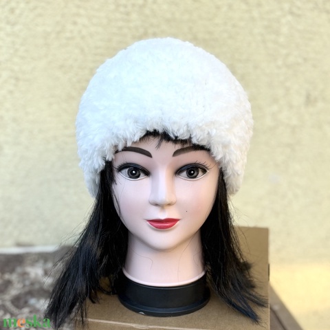 Szőrme hatású meleg kötött női sapka gyerek tini méret fehér 5637558