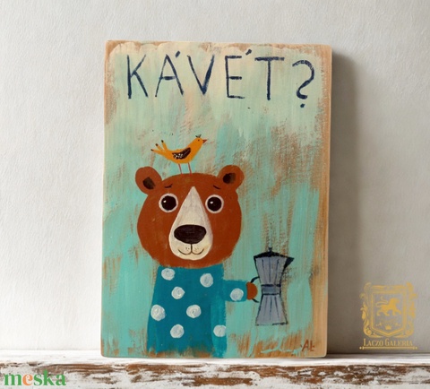 Ki kér Kávét? - Rusztikus Fatábla, Vicces Ajándék ötlet - Egyedi Falidísz, Konyha, Medve, Mackó