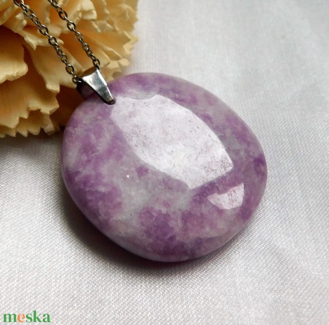 Orvosi acél szerelékre akasztottam ezt a különlegesen szép lepidolit medált.