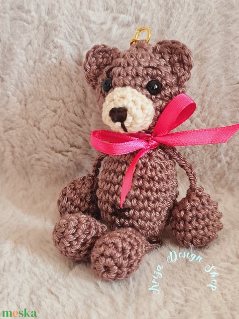 Kézműves horgolt kabalafigurás kulcstartó - Mini mackó (Bendegúz)