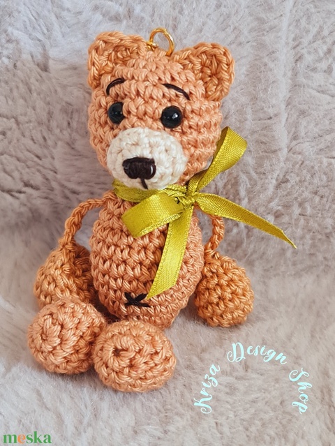 Kézműves horgolt kabalafigurás kulcstartó - Mini mackó (Balázs)