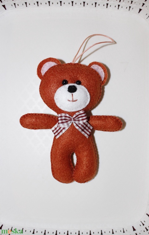 Mackó, medve - kismaci filcből kockás masnival, akasztóval-