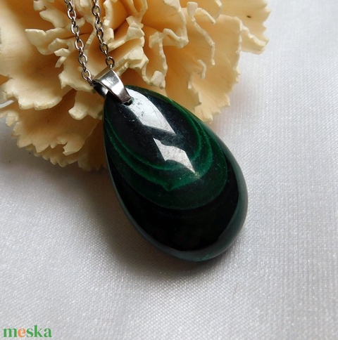 Orvosi acél szerelékre akasztottam ezt a különlegesen szép malachit medált.