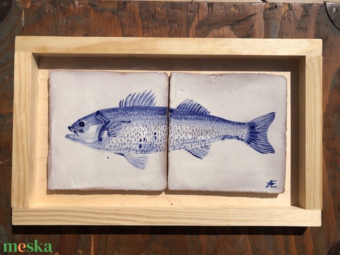 Kézzel festett mázazott portugál csempekép hal, 2 db-os kompozíció