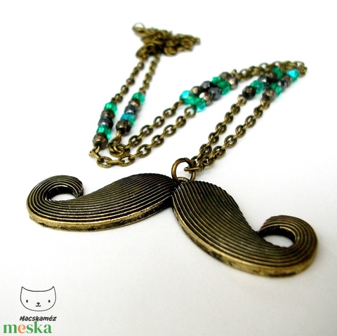 Bajusz - Hosszú bronzszínű nyaklánc bajusz medállal csiszolt gyöngyökkel