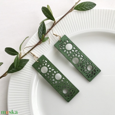 Természetes fa fülbevaló, zöld napraforgó mintával - Mesedoboz