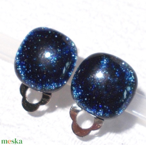 Kék selyem aventurin klipszes fülbevaló ajándék nőknek névnapra, születésnapra.