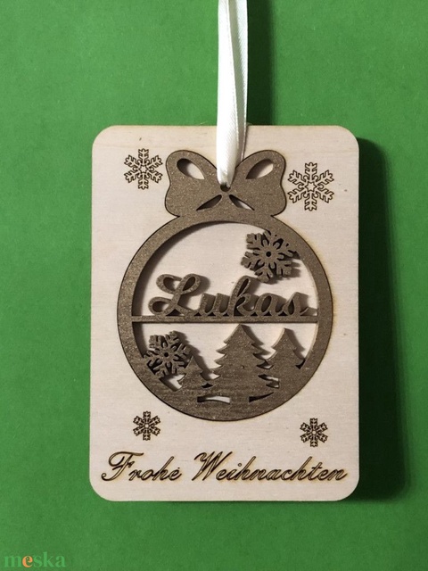 Karácsonyfa gömbbel üdvözlőlap – egyedi feliratos és névre szóló ünnepi dísz