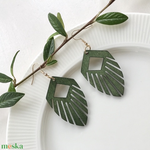 Fából készült pávatoll alakú fülbevaló - Mesedoboz