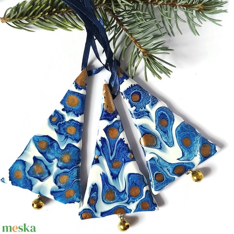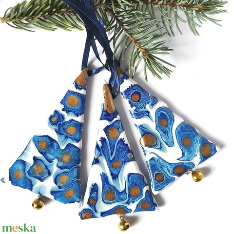 Absztrakt kék üveg karácsonyfadísz pici haranggal