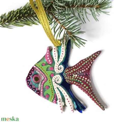 Díszes trópusi hal, üveg karácsonyfadísz